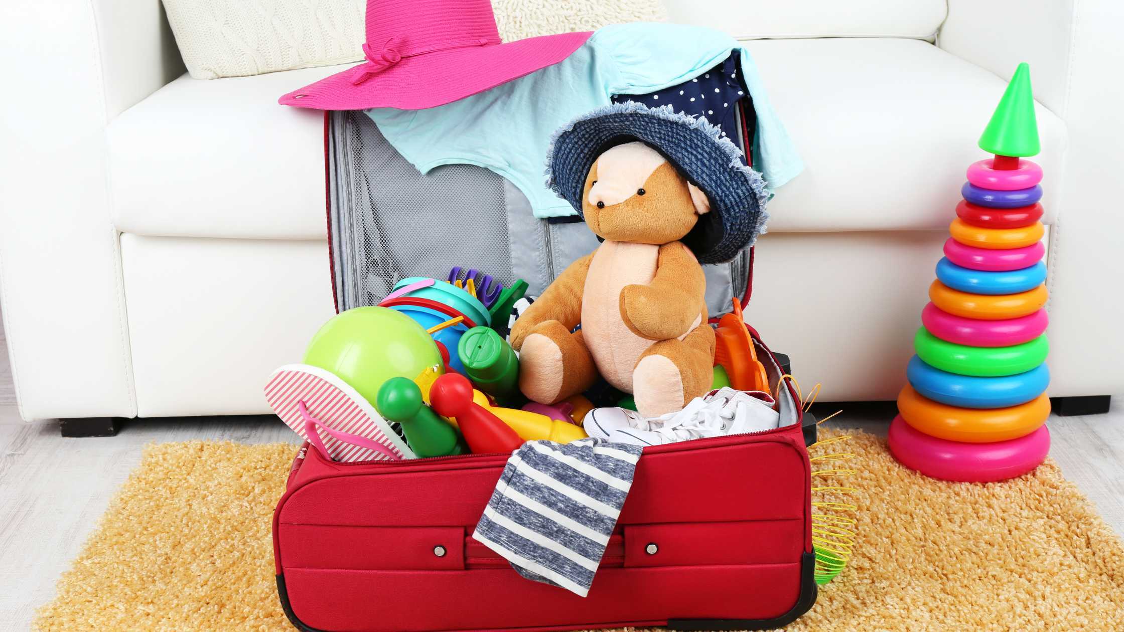 Organize each family member’s belongings in small strollers and backpacks. Just tag them for easy identification and access.